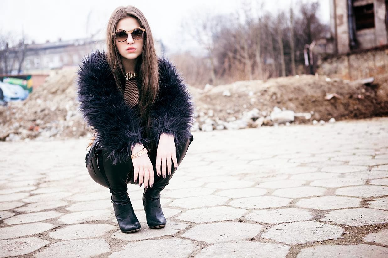 Dzisiejszy kolorowy outfit składa się z mojego ulubionego futerka (motelrocks.com), które uważam za mój najlepszy zimowy zakup. Dobrałam do tego: siateczkowe body, lateksowe spodnie i naszyjnik z Tally Weijl, buty na przezroczystej koturnie (stylowebutki.pl) oraz okulary (deezee.pl)